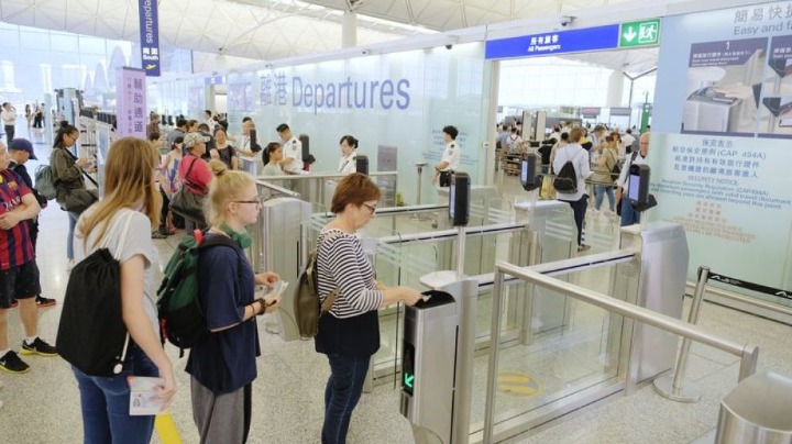 15日的香港国际机场秩序井然、人来人往,只有客运大楼外树立的高大白色水马和等候进站检查的旅客排起的长队,提醒着人们过去几天中曾经有暴徒在这里肆虐。2019-08-16 14:50