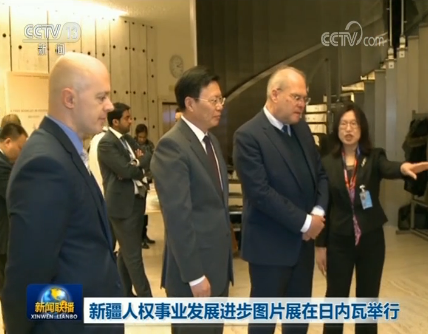 央视网消息(新闻联播):联合国人权理事会第40届会议期间,中国常驻联合国日内瓦代表团和中国人权研究会在万国宫共同举办了“中国新疆人权事业发展进步”图片展。展览通过80多幅图片,展示了新疆社会稳定、经济发展、民族团结、文化繁荣的景象。 这是中国在联合国人权理事会首次举办以新疆为主题的展览。