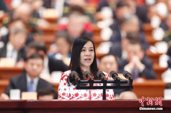 3月11日,全国政协十三届二次会议在北京人民大会堂举行第四次全体会议。香港中文大学当代中国文化研究中心荣誉研究员凌友诗作“坚持一个中国原则 丰富和平统一实践 热切期待两岸统一到来”的发言。中新社记者 盛佳鹏 摄