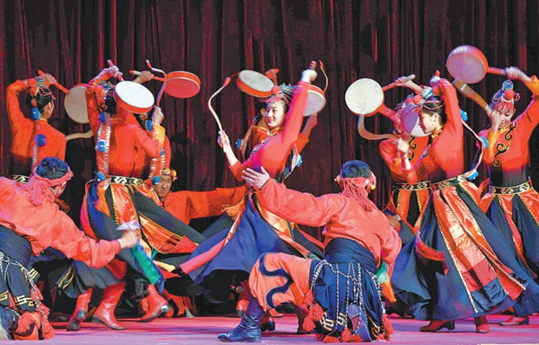 文艺工作者载歌载舞,庆祝西藏民主改革60周年,雪域高原到处洋溢着喜庆气氛。西藏文化产业对当地经济发展增长的贡献率越来越高。 洛 桑摄