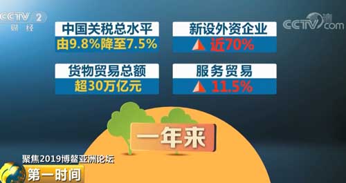央视网消息:在去年的博鳌亚洲论坛上,中国继续对外开放的决心举世瞩目,一系列扩大对外开放的重大举措也相继落地。如今时隔一年,中国全方位对外开放的成绩如何?
