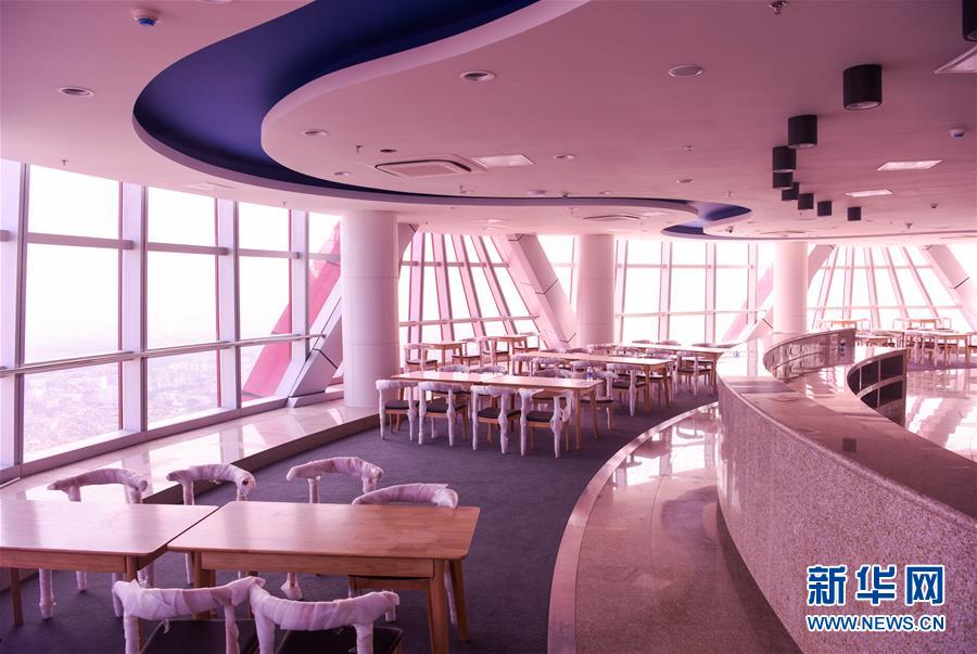 这是4月10日在斯里兰卡科伦坡莲花电视塔拍摄的旋转餐厅。