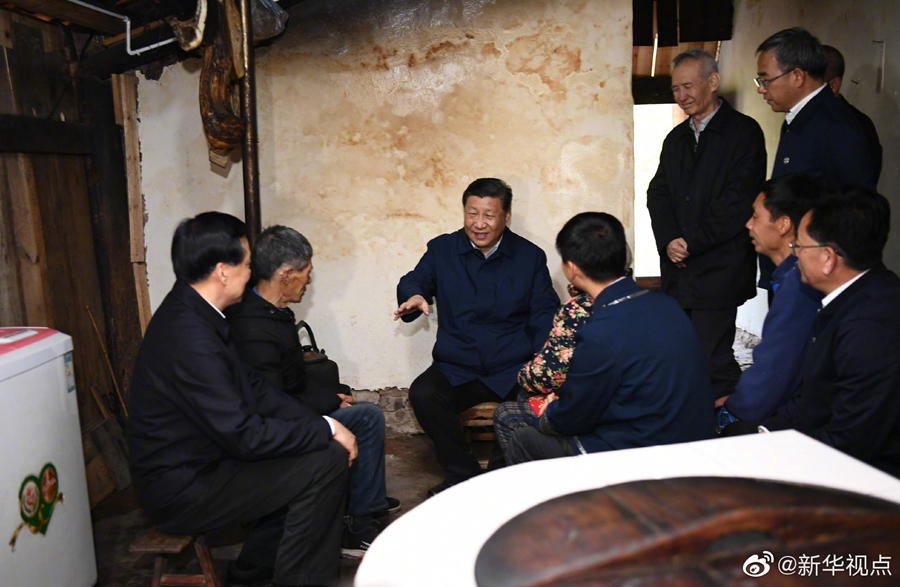 15日下午,正在重庆市调研的习近平总书记来到石柱土家族自治县中益乡华溪村贫困户谭登周家。谭登周老两口去年因病因伤返贫,在帮扶政策下逐步摆脱贫困,基本生活有保障。总书记同他们一起算起了收入账和医疗账:“低保补助有多少?”“土地流转一年收入多少?”“医药费花了多少?报销了多少?”“子女一年给的赡养费有多少?”习近平问得十分仔细。他说,你们家不愁吃、不愁穿这“两不愁”我们直接看到了,医疗保障、住房安全做得也挺好。党的政策对老百姓好,才是真正的好。(文字:张晓松 摄影:王晔、谢环驰、刘彬)