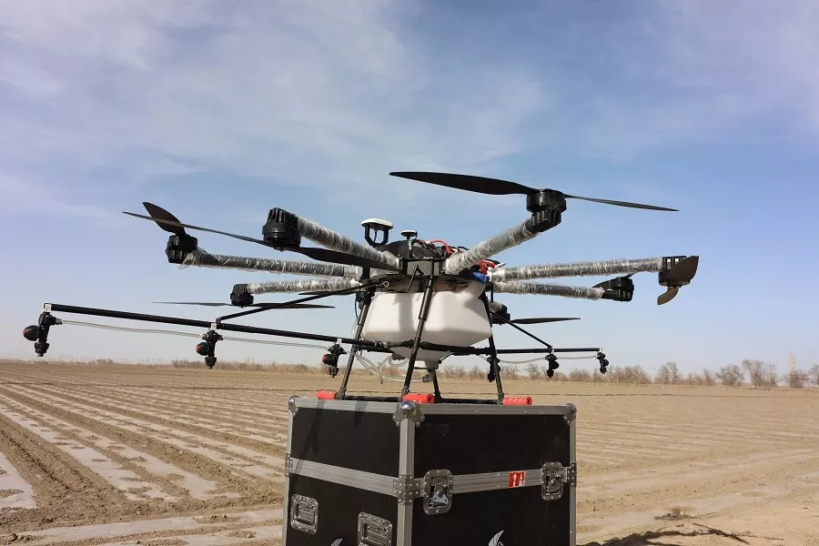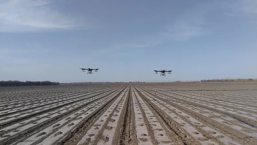 150团春播会战现场的飞防无人机