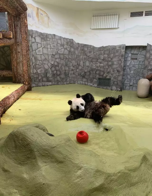 王平峰说,刚到莫斯科动物园的时候,中方人员发现这里的湿度比较小,只有20几度,而熊猫平时要生活在70多度的地方。为此,园方专门为大熊猫安装了调湿系统,室外活动场所也安装了喷淋系统,可以调湿也可以调温。两个“小家伙”在工作人员悉心准备的新家中开心的玩耍着。