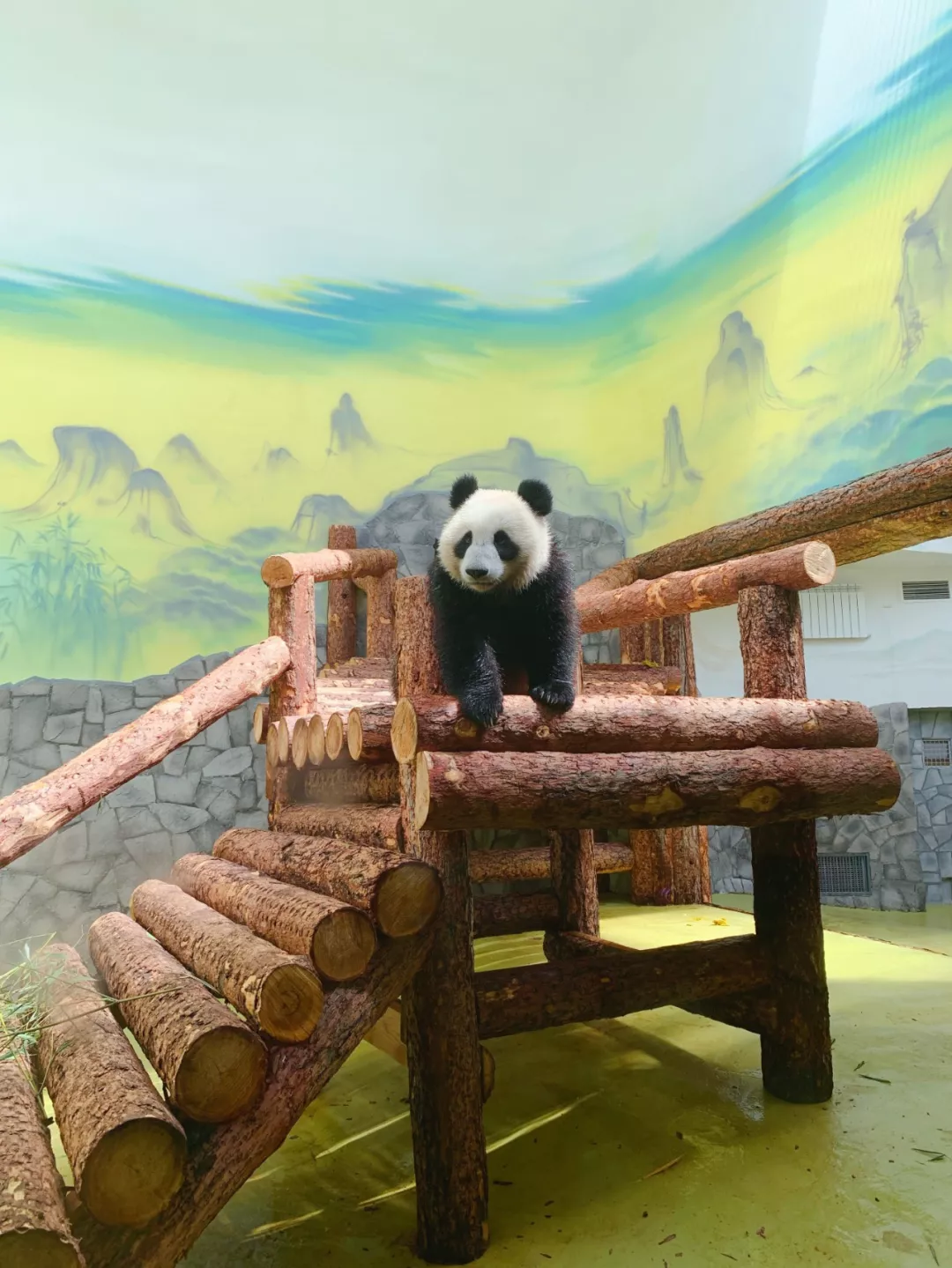 “如意”和“丁丁”室内运动场的墙上画有中国风的图案,不仅美化了两个“小家伙”的居住环境,体现出中国特色,还让他们能在异国他乡也找到“家”的感觉。