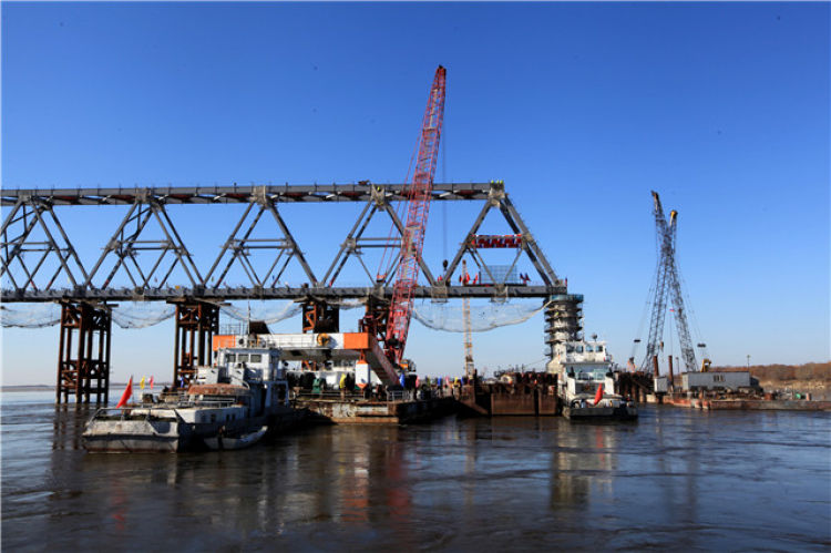 这是2018年10月13日拍摄的同江中俄铁路大桥的中方建设部分。新华社记者 马知遥 摄