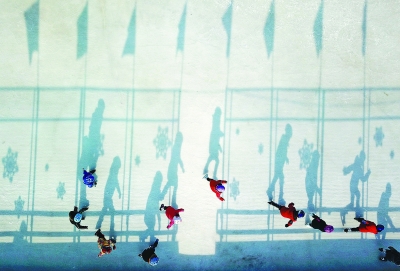 北京延庆太平庄中心小学的学生在冰场上练习滑冰动作。新华社发