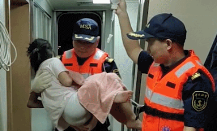 由于“地中海辉煌”轮后面有包括邮轮“盛世公主”号在内的多艘船舶在深水航道内,最终,“地中海辉煌”号和“海特1001”之间尝试在航行状态下采取并靠方式转移病人。经过多次尝试,当晚6时50分,“海特1001”克服海上大风大浪终于将病人接下,全速赶回码头,等候在此的救护车随即将女孩送往医院救治。目前,女孩已脱离生命危险。