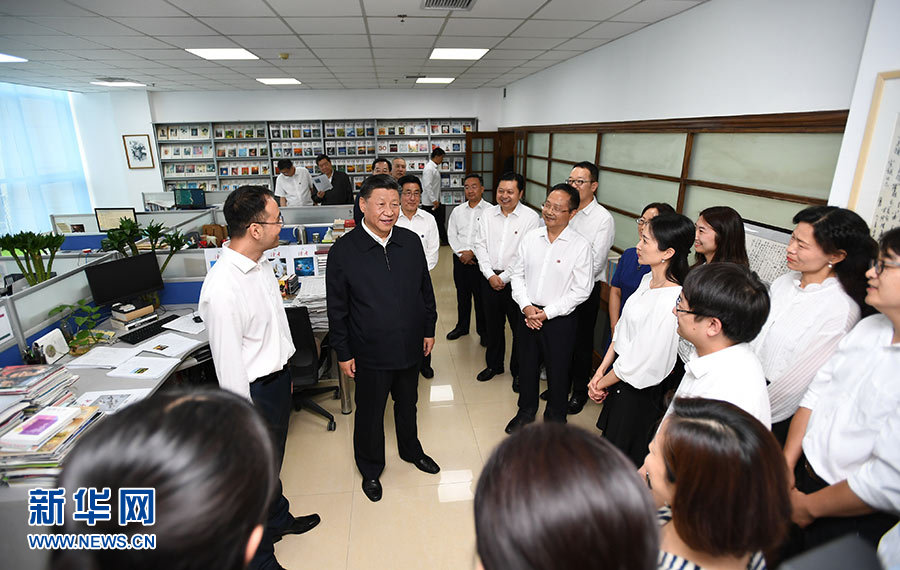 8月21日下午,中共中央总书记、国家主席、中央军委主席习近平在甘肃省兰州市读者出版集团有限公司考察调研。 新华社记者 谢环驰 摄