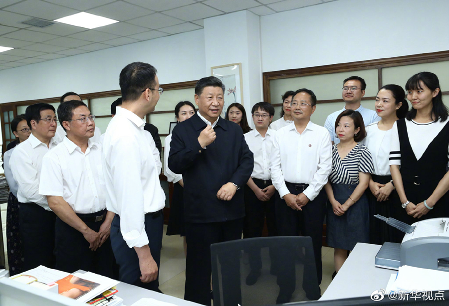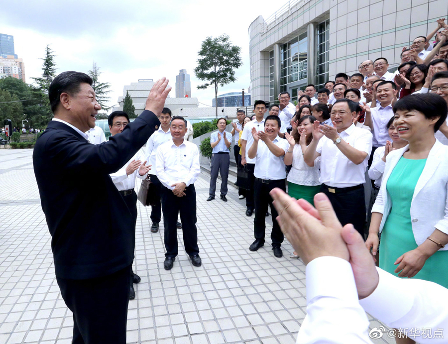 21日下午,正在甘肃考察的习近平总书记来到位于兰州市区的读者出版集团有限公司,了解企业历史沿革、出版发行、经营管理等情况,看望《读者》编辑部工作人员。习近平对大家说,人民群众多读书,我们的民族精神就会厚重起来、深邃起来。要提倡多读书,建设书香社会。(文字记者:张晓松、朱基钗 摄影记者:鞠鹏、谢环驰)
