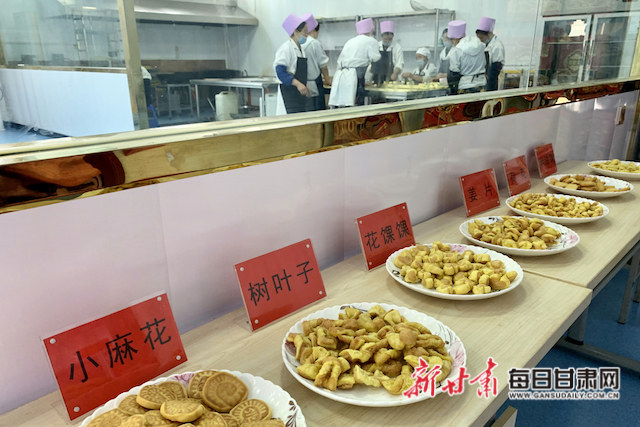 布楞沟村当地妇女在扶贫车间制作的特色小吃。