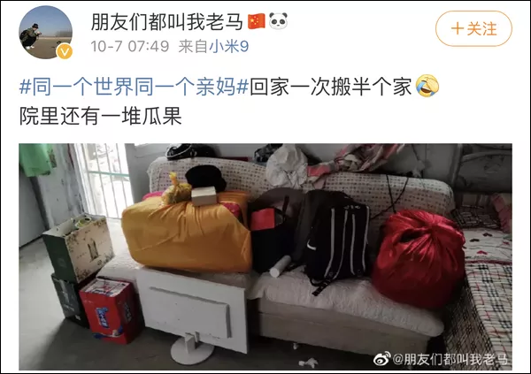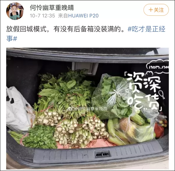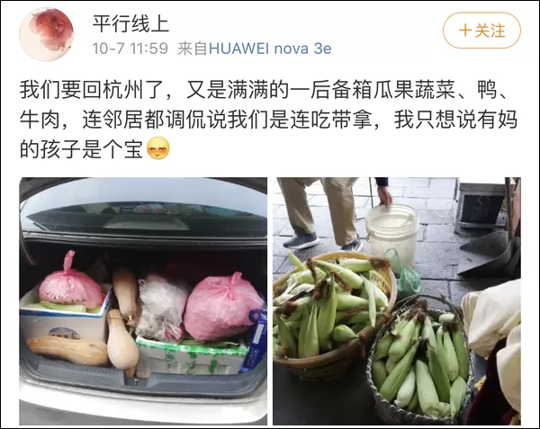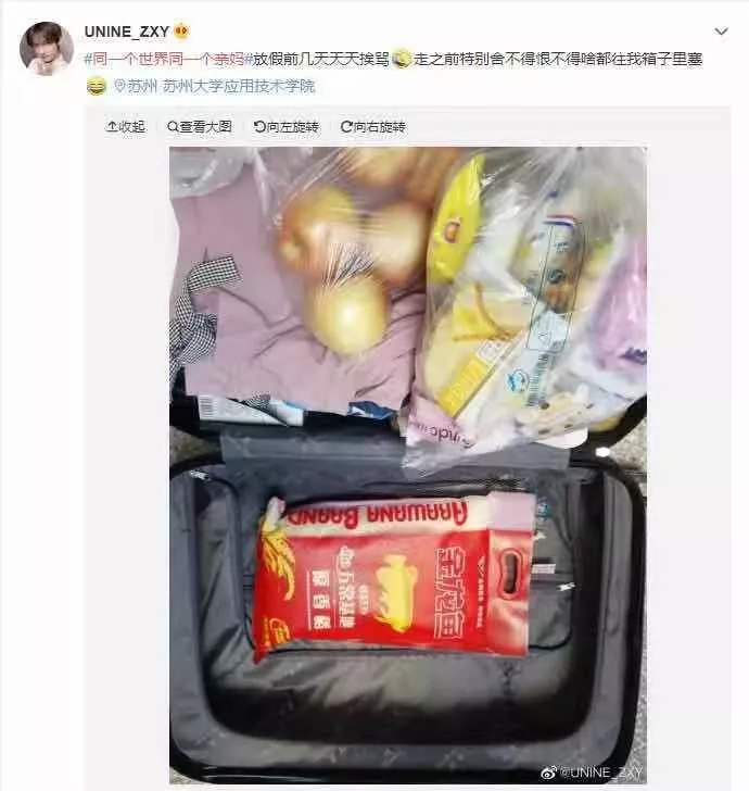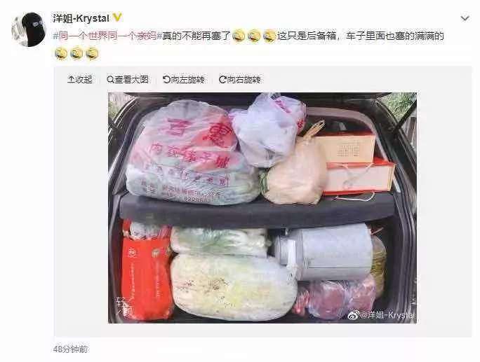 @一个充满热情且理智的人:我没有车,打的顺风车,然后我妈给我塞了油,冷吃兔,一袋核桃,鸡,鸭,牛肉,还顺了2个地瓜。还特意给我包了粽子,我在想,有车岂不是家都要搬空