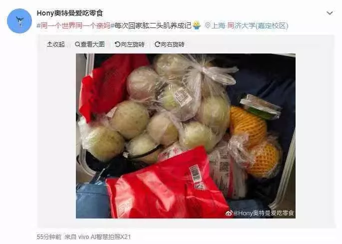 @RRZNL:手提两大袋,自家的花生油、米、米粉、酸菜、火龙果、红枣、肉丸子、一袋青菜。恨不得把家能拿的都拿上