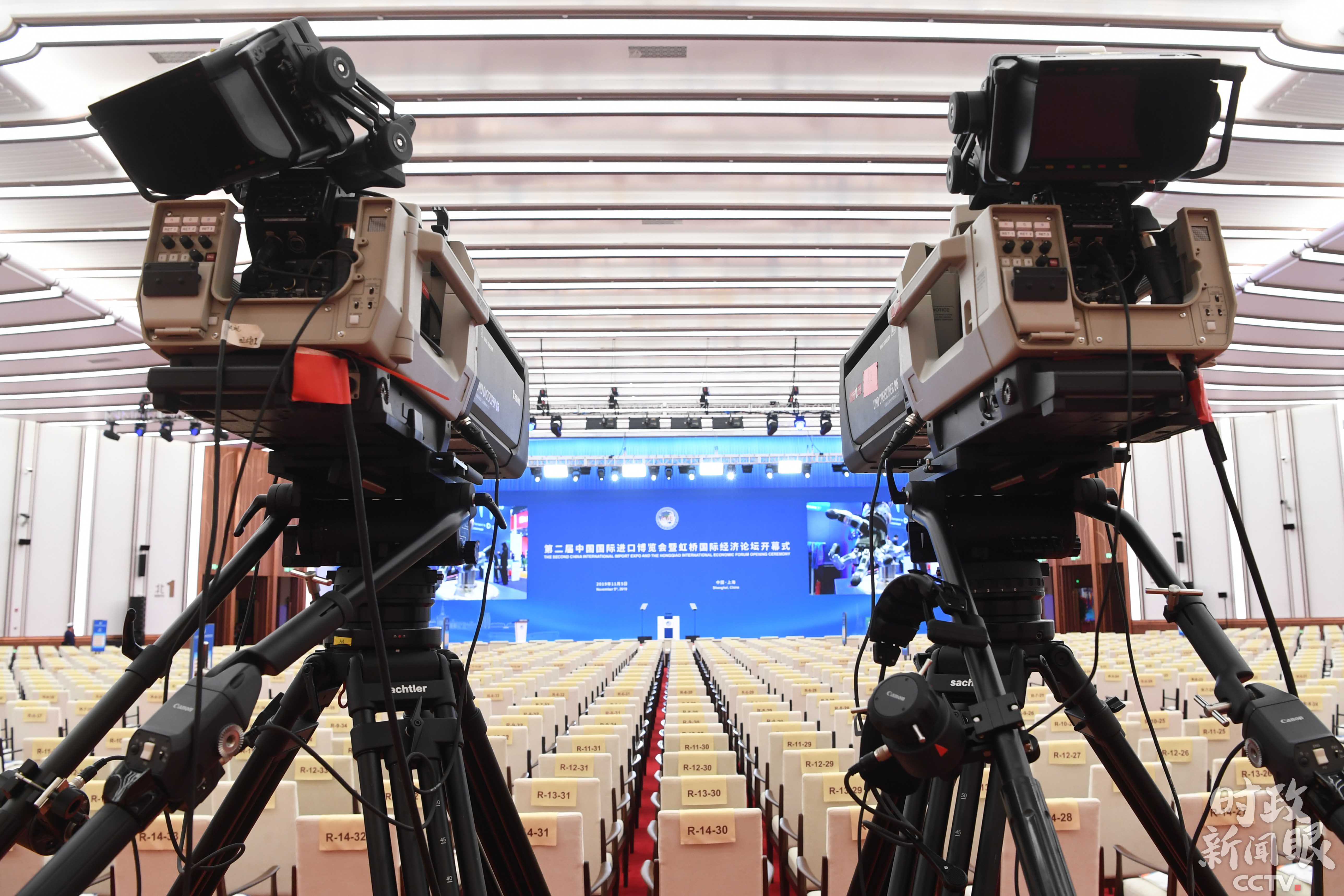 △11月5日上午,中央广播电视总台将对第二届进博会开幕式作现场直播,目前直播准备工作已经就绪。(央视记者廖江衡拍摄)