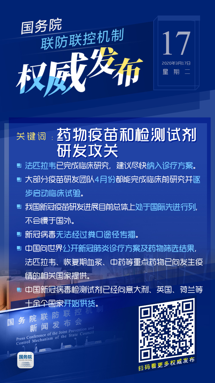 国务院联防联控机制17日下午举行新闻发布会,介绍了药物疫苗和检测试剂研发攻关最新情况。一起来看!