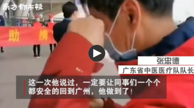 除夕出发的广东省中医院副院长张忠德,选择了继续留守湖北武汉雷神山。3月20日,在送别队友时,难免黯然神伤。他经历过非典、感染过非典,因为非典还失去了最为要好的同事,战友。这一次他说过,一定要让同事们一个个都安全地回到广州。他做到了,广东省中医院支援湖北的医疗团队做到了,整个广东省医疗队员都做到了零感染。