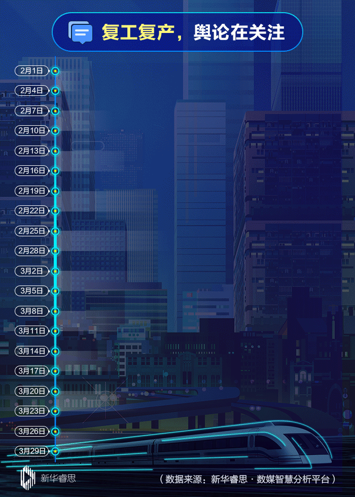 伴随着复工复产步伐加大,相关话题在网上的信息量出现激增,关注热度也明显呈现出同步快速增长的趋势。