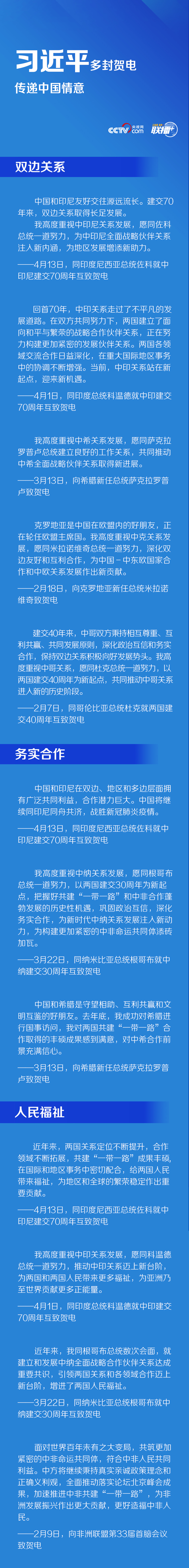 一封封贺电,既展望了双边关系的发展前景,又传递了务实合作、为人民造福的真切期望。央视网《联播+》为您梳理,与您一同感受习近平贺电中的中国情意。