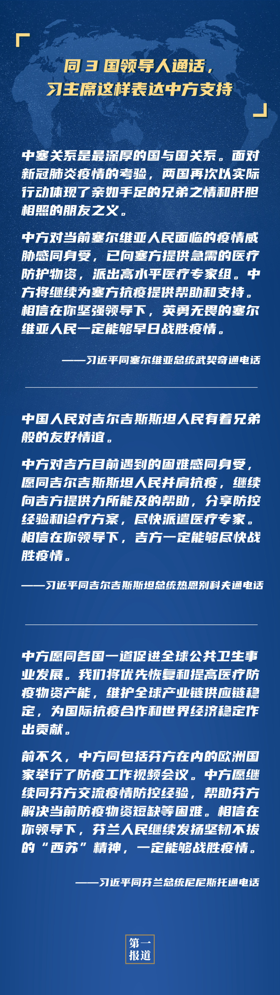 在14日晚通话中,习主席这样表达中方对3国抗击疫情的支持: