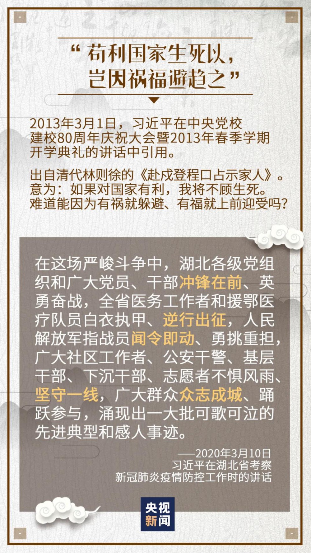 让我们重温经典,探寻战“疫”大考所展现的中华传统文化底色,感受中华民族发展中这份更基本、更深沉、更持久的力量。
