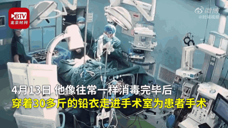 近日,河北省定州市人民医院创伤科主治医生吕岩,像往常一样,消毒完毕后穿着30多斤重的铅衣走进手术室为患者手术。