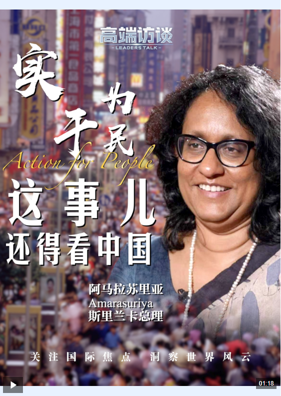 斯里兰卡总理阿马拉苏里亚日前接受总台《高端访谈》栏目专访。她点赞中国发展奇迹,直言从中国学到“担当、纪律、为民”三大启示,其中“为民”是核心,人民生活的切实改善就是中国发展奇迹的最好证明!