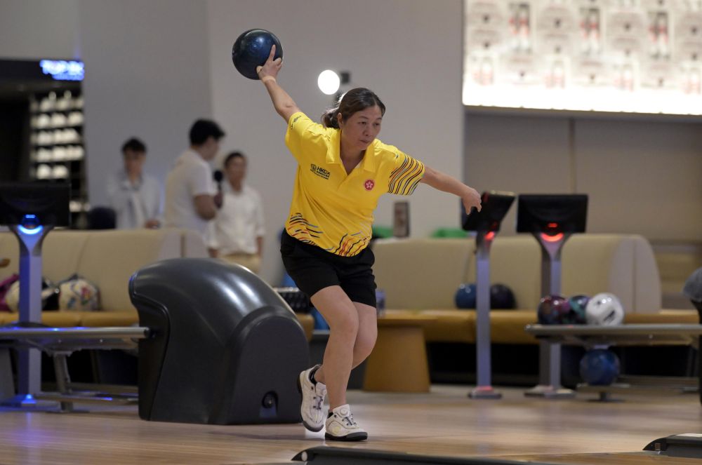 2025年8月11日,香港队选手陈淑娴在香港备战第十五届全运会群众比赛保龄球项目。新华社发(卢炳辉摄)