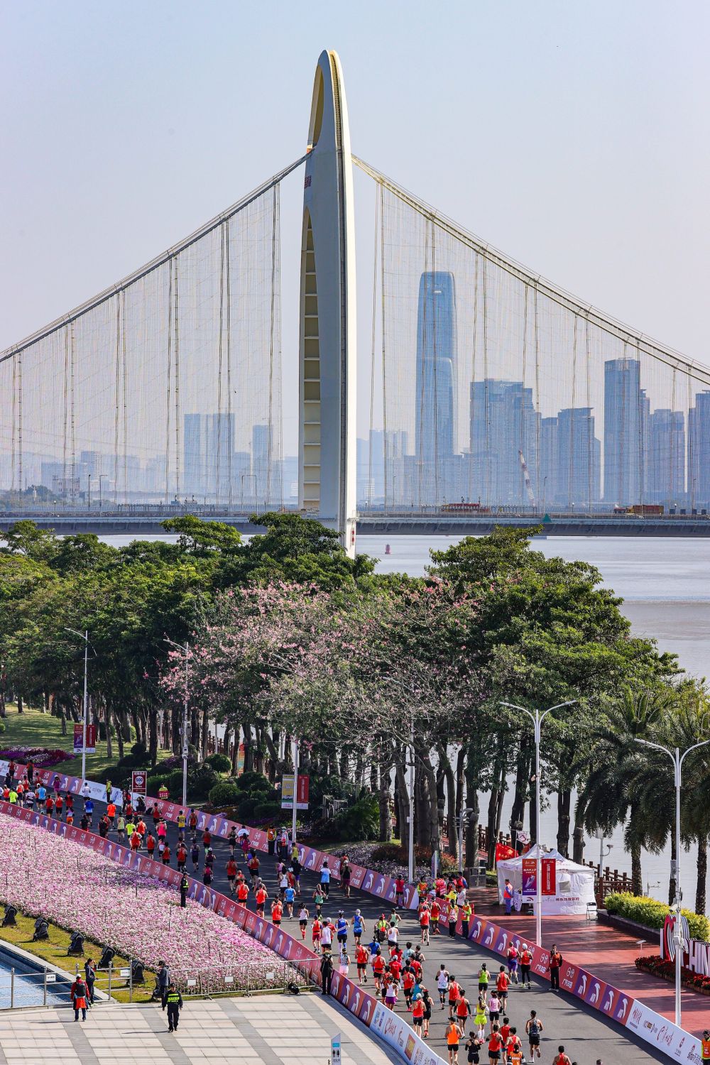 2024年12月8日,参赛选手在广州马拉松比赛中。新华社发(黄晋文摄)