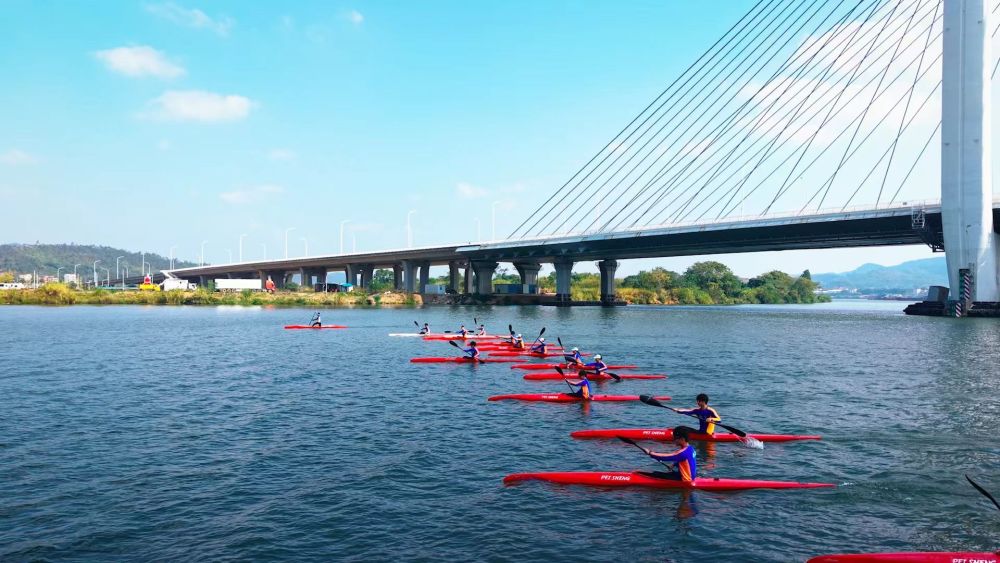 2025年10月26日,市民在广东韶关武江区韶州体育公园旁北江水域练习赛艇。韶关市文化广电旅游体育局供图