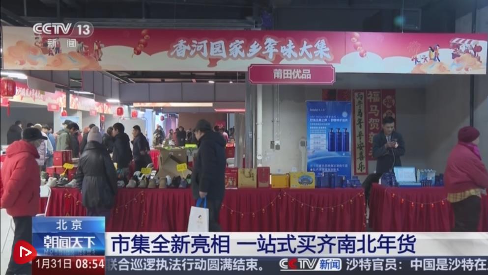 央视网消息:这几天,北京市朝阳区的柒号市集格外热闹,全国各地的特色年货一应俱全。
