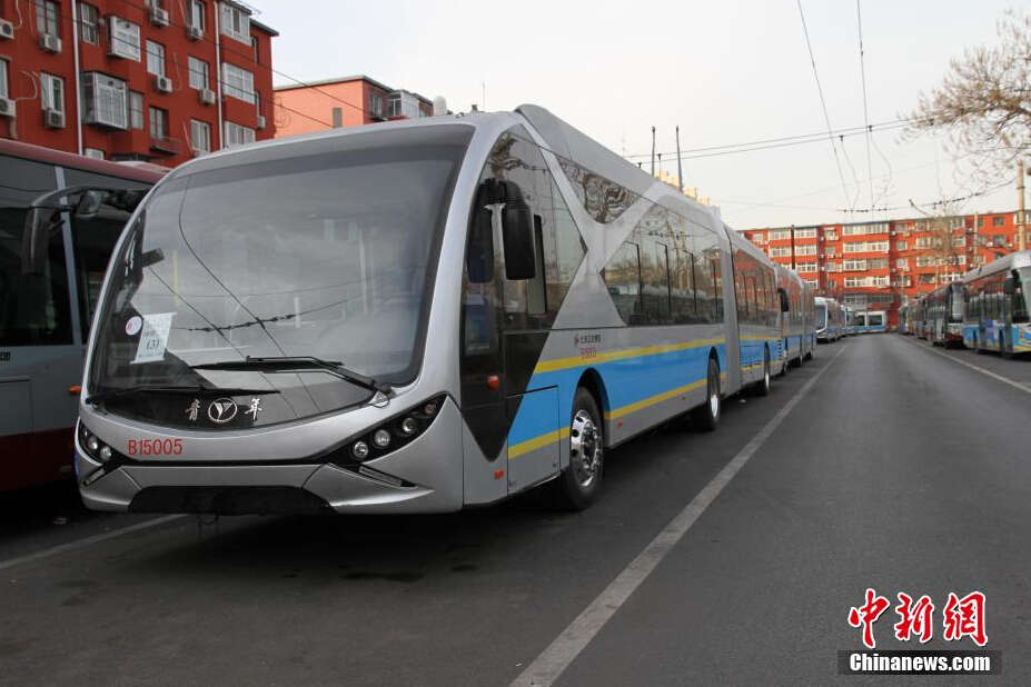 北京18米长新型电动公交车“电鲶鱼”将投入使用