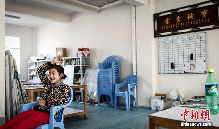 图为20岁的阿丽在午休时间看韩剧。 中新社发 张浩 摄
