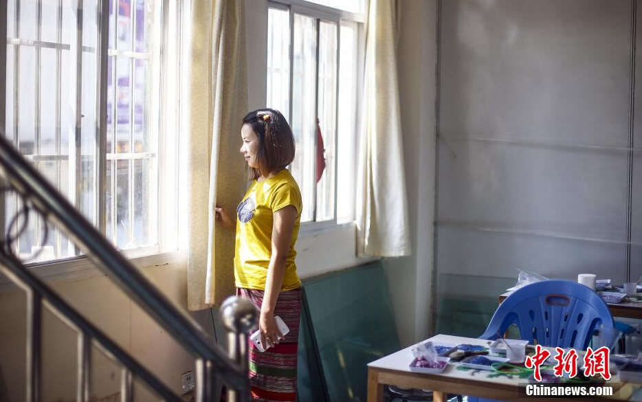 图为18岁的雅雅站在工作间,她说在瑞丽除了吃的和缅甸完全不一样。 中新社发 张浩 摄