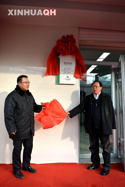 出席开业仪式的领导为湟中三江村镇银行揭牌。