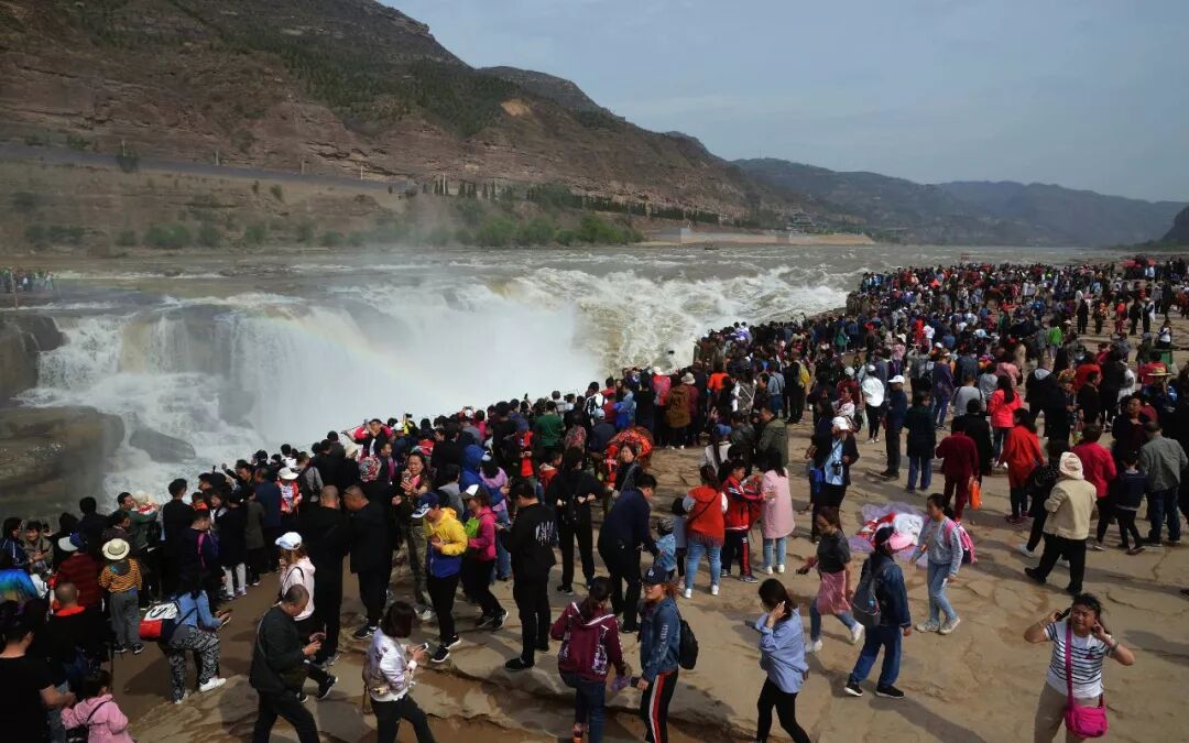 △5月3日,众多游客在黄河壶口瀑布游览观瀑。