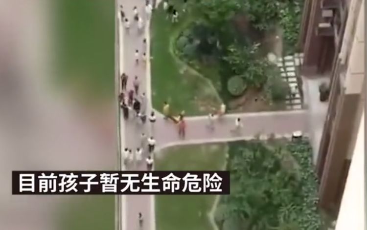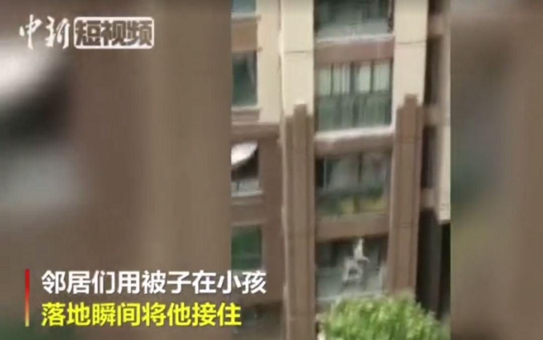7月29日下午,重庆一小区居民楼六楼,一小孩翻出窗外命悬一线。邻居们就地取材,用一床被丢弃的被子作工具,扯起被子四角作为气垫,在小孩落地瞬间将他接住。