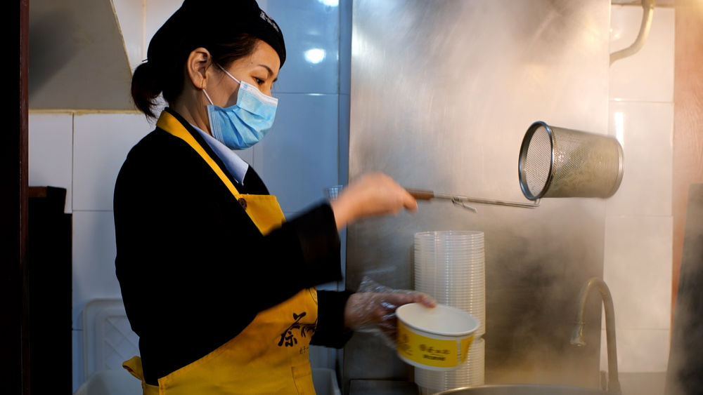 ——热干面回来了!烧水、备料、调酱、捞面……吉庆街上的热干面老字号“蔡林记”恢复线上销售,一时间面香四溢。