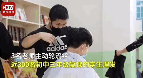 3位老师轮流为近300名复课学生理发