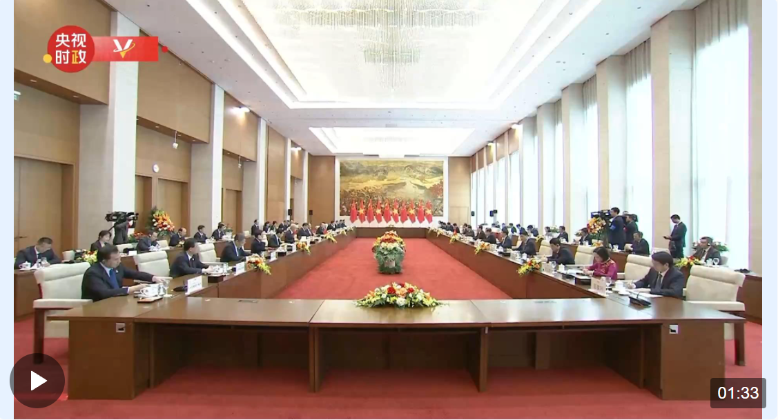 当地时间12月13日上午,国家主席习近平在河内国会大厦会见越南国会主席王庭惠。