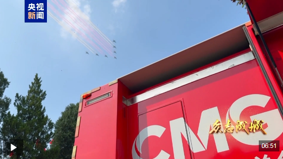 中央广播电视总台直播团队C系统导演 洪玫:今年在年号台的特殊镜头设计,我们也设计了伸缩臂制作的长镜头。它体现的是从“1945”到“2025”这样的一个历史长河当中,我们既珍爱和平,又有这种能力来捍卫和平的一种精神和力量,所以我们希望能够用我们的镜头语言,也能够诠释出这样的一种含义。