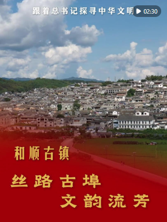 2020年1月19日,习近平总书记来到云南腾冲和顺古镇考察调研。和顺是古代川、滇、缅、印南方陆上“丝绸之路”的必经之地,保存了比较完整的明清古建筑群。考察中,习近平总书记走进和顺图书馆,了解古镇历史文化传承和振兴文化教育情况。