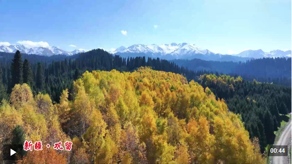 深秋时节,新疆巩留县库尔德宁自然保护区进入一年中最绚烂的季节。从空中俯瞰,雪岭云杉苍翠依旧,漫山遍野的白桦、山杨已披上金黄外衣,与碧空、雪山交相辉映,构成层次分明的自然画卷。(总台记者 苏蒙)