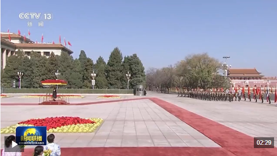 会见前,习近平和夫人彭丽媛在人民大会堂东门外广场为哇集拉隆功和王后素提达举行欢迎仪式。