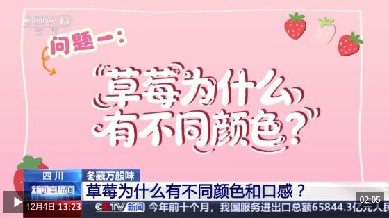 在四川成都,4万亩冬草莓已进入丰收季。今年上市的除了常见的红草莓之外,还有白草莓、粉草莓等品种。