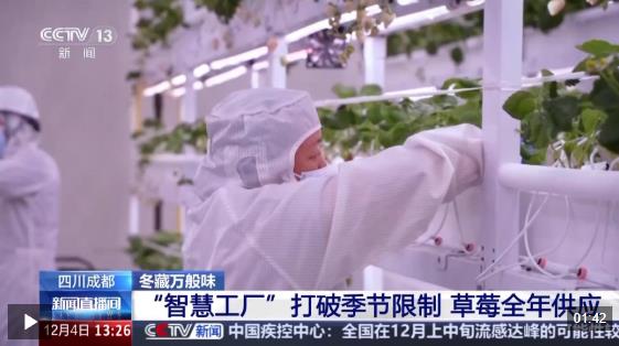 四川的冬草莓采摘时间一般是从11月持续至次年4月。但是在成都温江的智慧“草莓工厂”,却打破了这个限制,365天都可以采摘,年产量是传统种植的三四十倍。